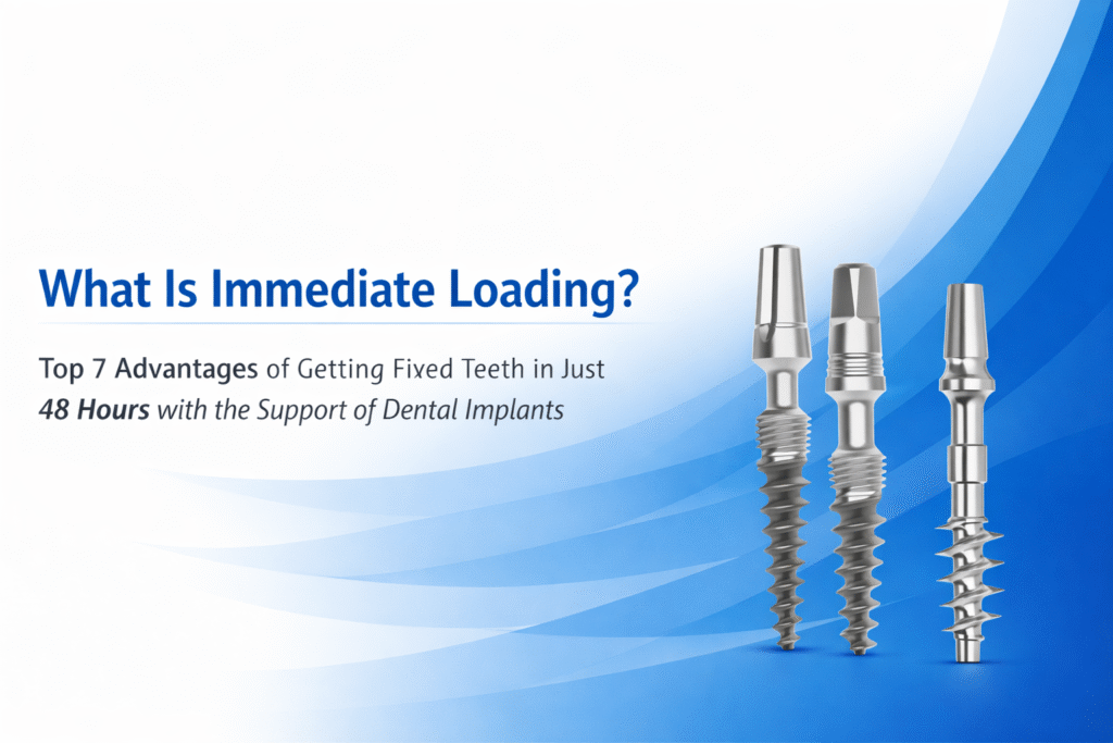 In simple terms, immediate loading means placing the dental implants and fixing the functional prosthetic teeth within 48 to 72 hours. Instead of waiting 3 to 6 months for healing, patients walk out of the clinic chewing, smiling, and speaking normally – almost immediately.